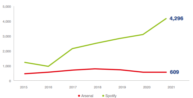 Ek also has experience in building and running a global brand with Brand Finance valuing the Spotify brand at £4.3 billion which represents a 4.5x increase since 2016, while Arsenal’s brand value has stalled in recent years.