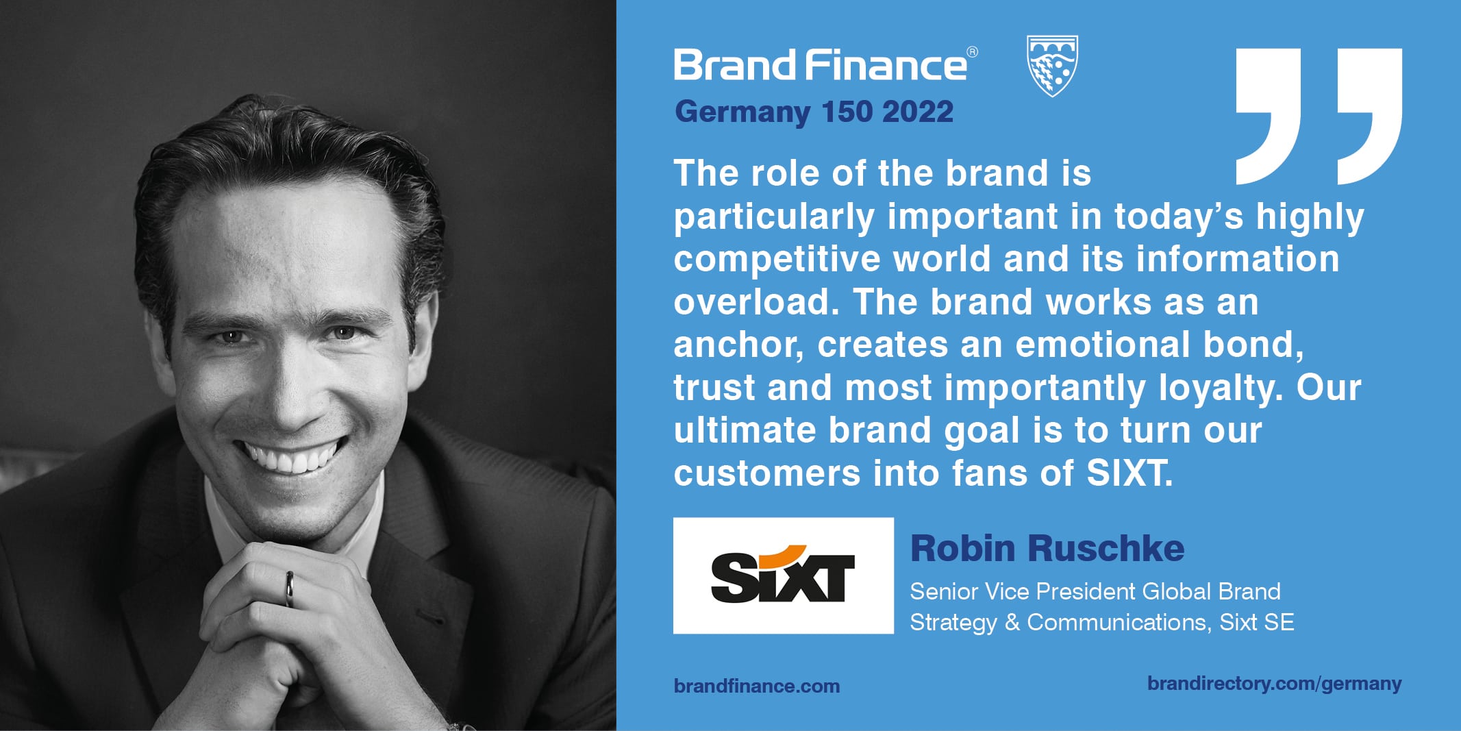 Die Rolle der Marke ist in der heutigen wettbewerbsintensiven Welt und ihrer Informationsflut besonders wichtig. Die Marke wirkt wie ein Anker, schafft eine emotionale Bindung, Vertrauen und vor allem Loyalität. Unser oberstes Ziel als Marke ist es, unsere Kunden zu Fans von SIXT zu machen.