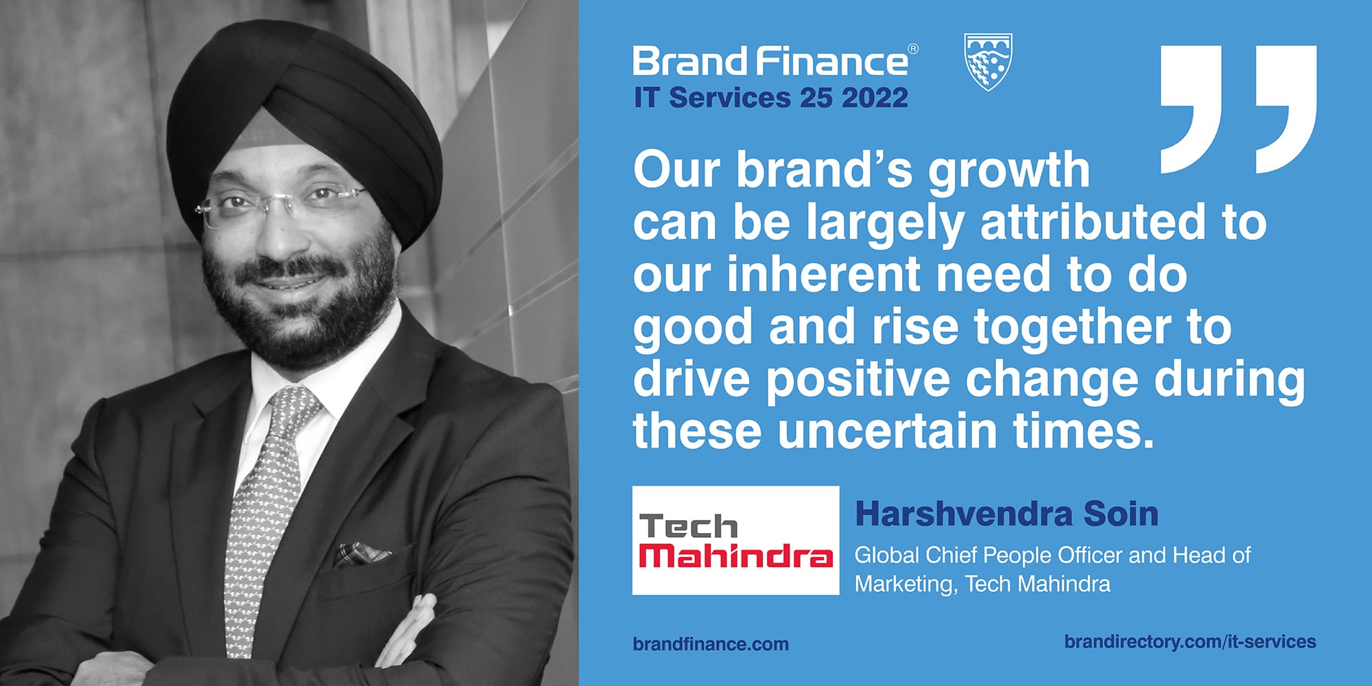 "Tech Mahindra with its refreshed ‘NXT.NOW’ framework, places focus on digital transformation offerings for its global clients. Its brand value has grown by an impressive 45% in the last two years on the back of gaining ground in industry verticals while also ensuring that the brand retains its customer loyalty. We expect the company to continue developing the brand as it targets the next stage of growth by investing in innovation, new verticals, and geographies. Tech Mahindra has balanced the growth in brand strength and remained relevant with focused initiatives in the area of sustainability, diversity, efficient brand building, and cloud transformation."