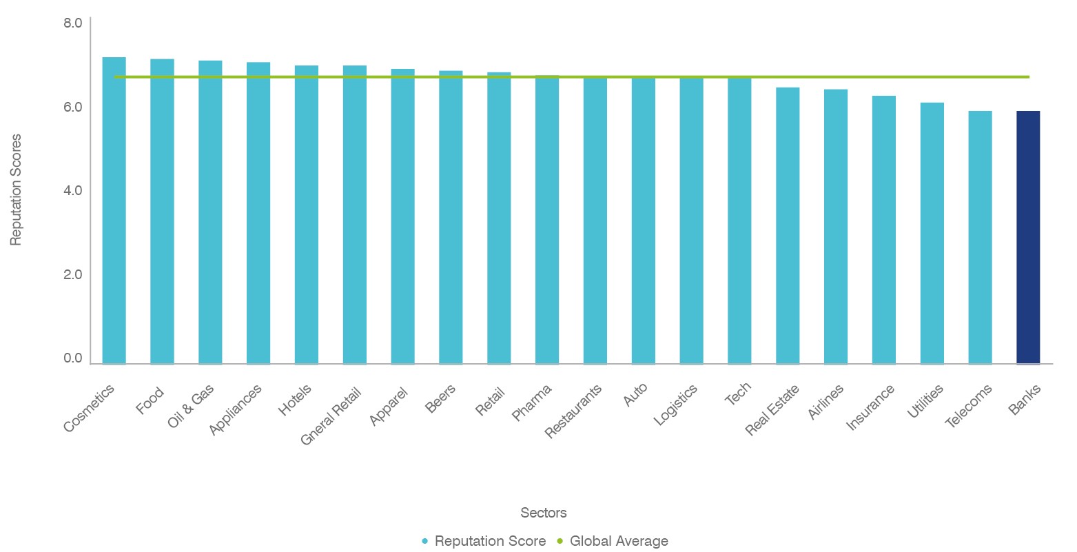Banking brands are by no means reputational leaders. In fact, according to research conducted by Brand Finance in 2020, the banking industry on aggregate ranks joint last out of 20 industries surveyed globally: