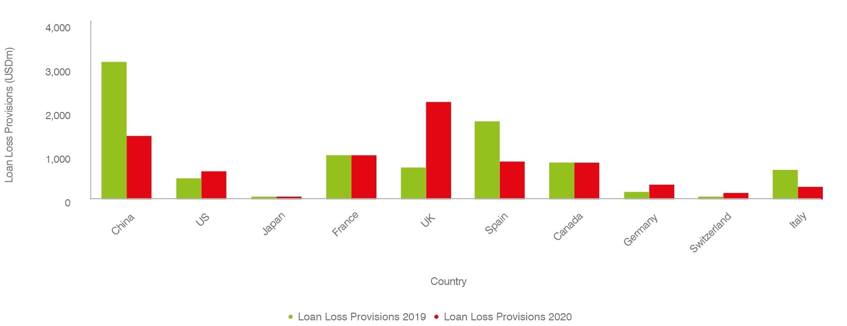 For example, within the Brand Finance Banking 500 2021 report, on average US banks have increased loan loss provisions by 130% year-on-year: