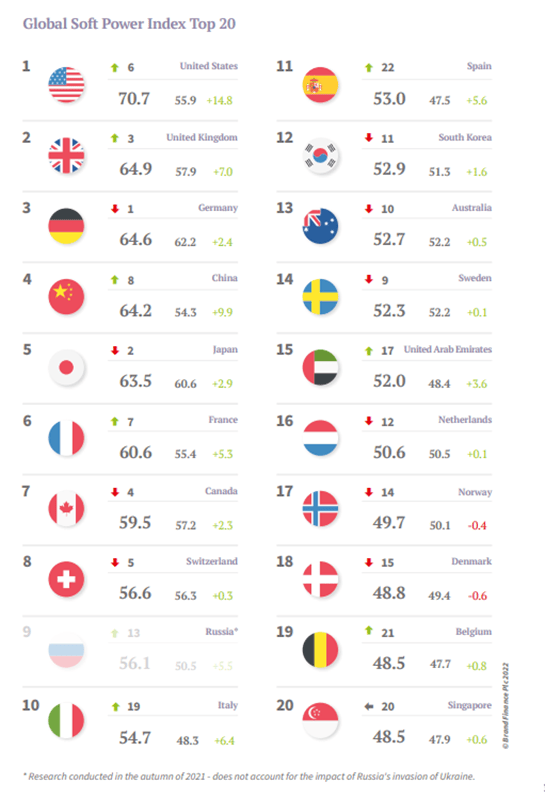 Global Soft Power Index welcomes 15 nations to 2022 ranking