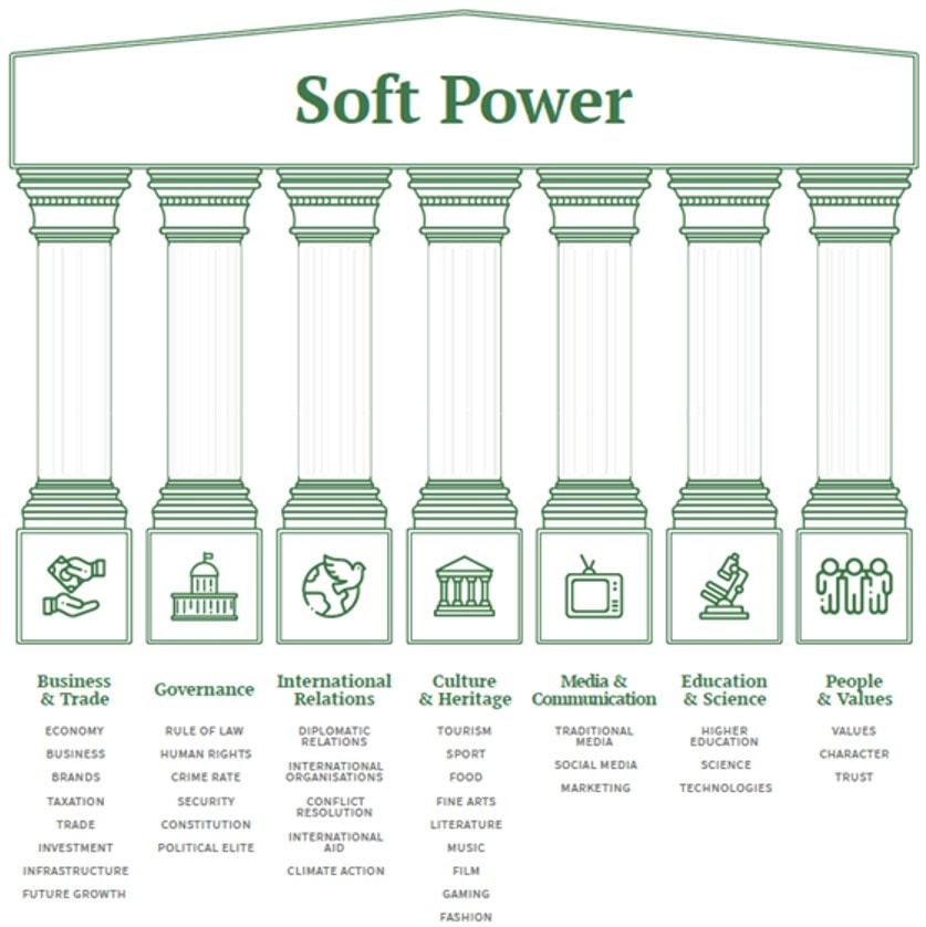 • Performance on the core 7 Soft Power Pillars (Business & Trade, Governance, International Relations, Culture & Heritage, Media & Communication, Education & Science, People & Values)