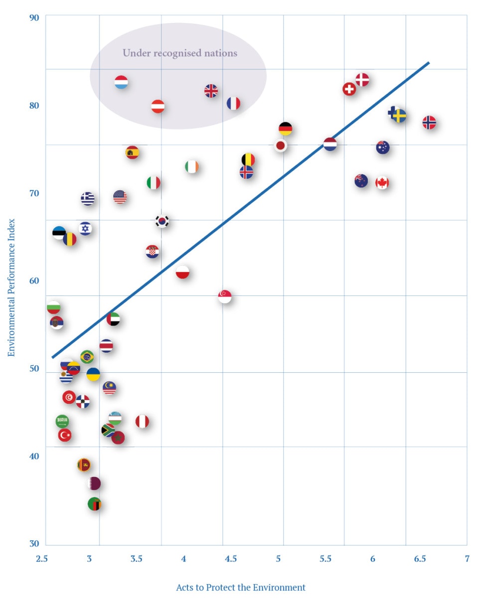 Perceptions of acts to protect the environment vs Environmental Performance Index