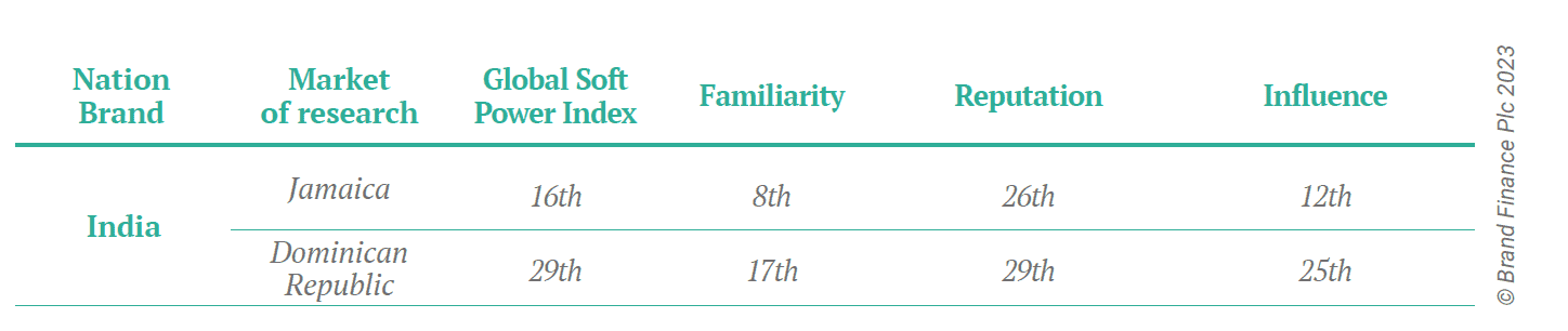 For example, South Africa, winners of the 2019 Rugby World Cup, rank 7th in Familiarity and 16th in influence among New Zealanders, compared to 28th and 31th respectively among the global sample. The same follows for India, which scores strongly for Influence among respondents in the Caribbean compared to non-cricket playing nations, with a significant difference visible even between Caribbean nations which are members of the West Indies Cricket Team and those that are not.