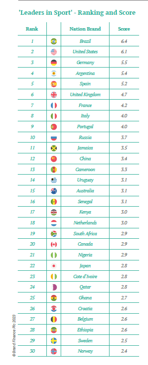 Although it is clear that sport has exposure to huge audiences around the world, it is not a direct driver of a nation’s Soft Power. The attribute “leaders in sport” is not a driver of Reputation or Influence.