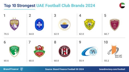 LONDON, 17 July 2024 – Al-Ain FC is top of the league as the strongest football club brand from the UAE, in the first time that Emirati football brands have been included as part of the global Brand Finance Football 50 report. The report ranks the world’s most valuable and strongest football club brands from across the world and is issued annually by Brand Finance, the world’s leading brand valuation consultancy.