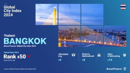The report reveals that Bangkok has secured a prominent position, ranking 50th overall among the world’s top city brands. The city also ranks 18th for ‘familiarity’, reflecting its global recognition as a popular destination.