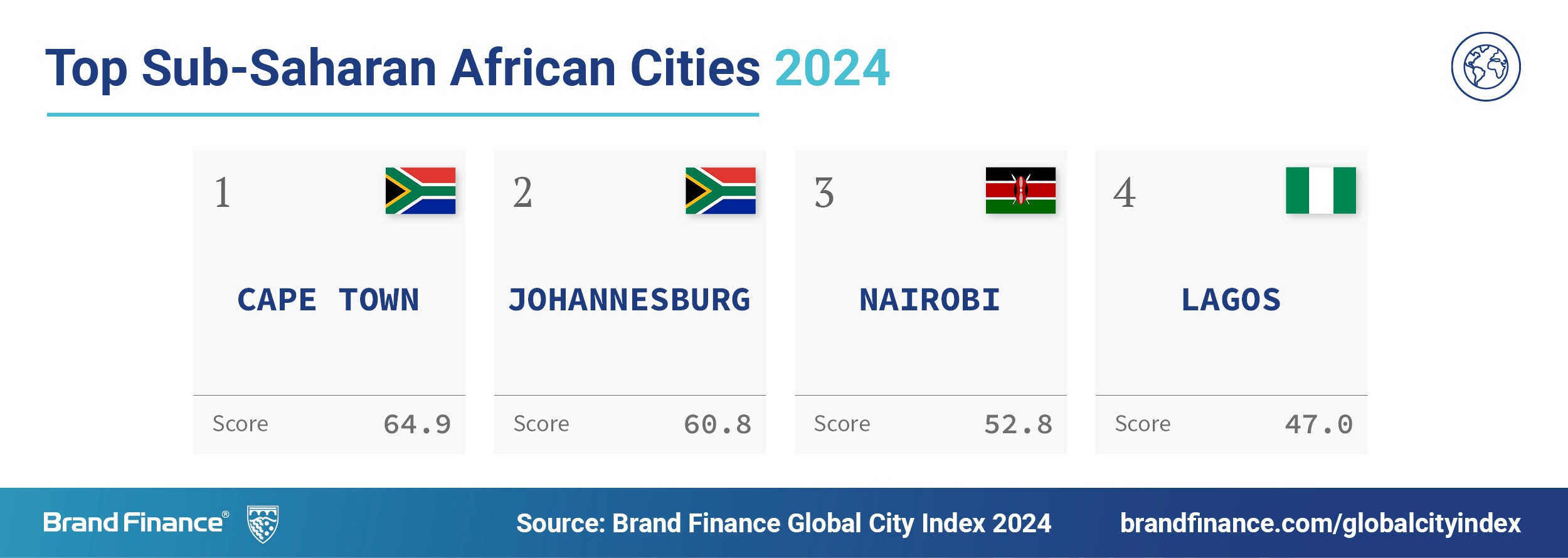 LONDON, 7 November 2024 – Cape Town remains Sub-Saharan Africa’s leading city brand, ranked 66th overall among the world’s top 100 city brands, according to the latest Brand Finance Global City Index, the most comprehensive global survey of city perceptions.