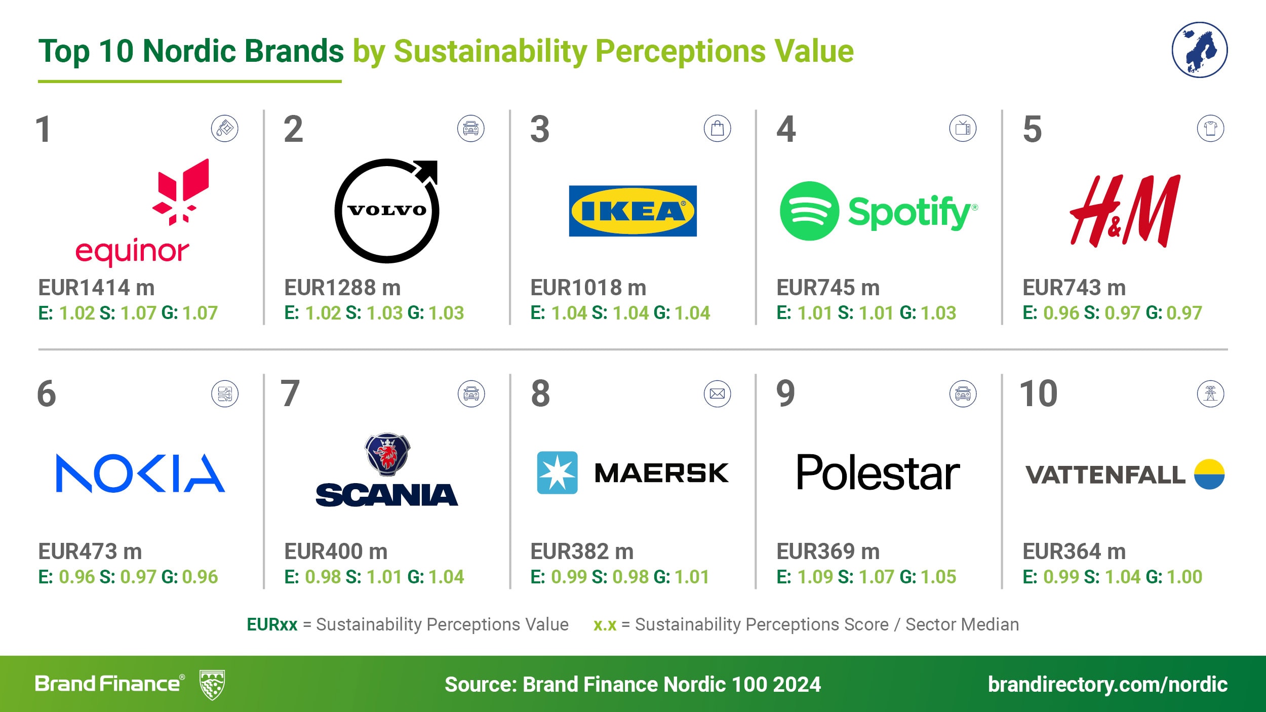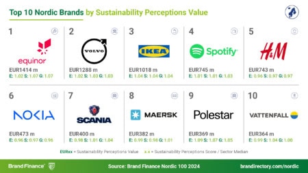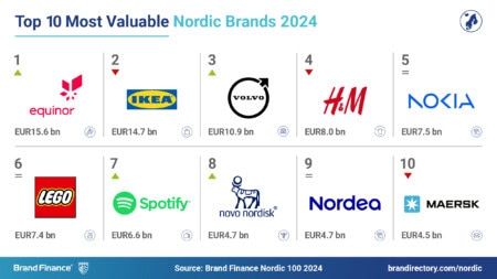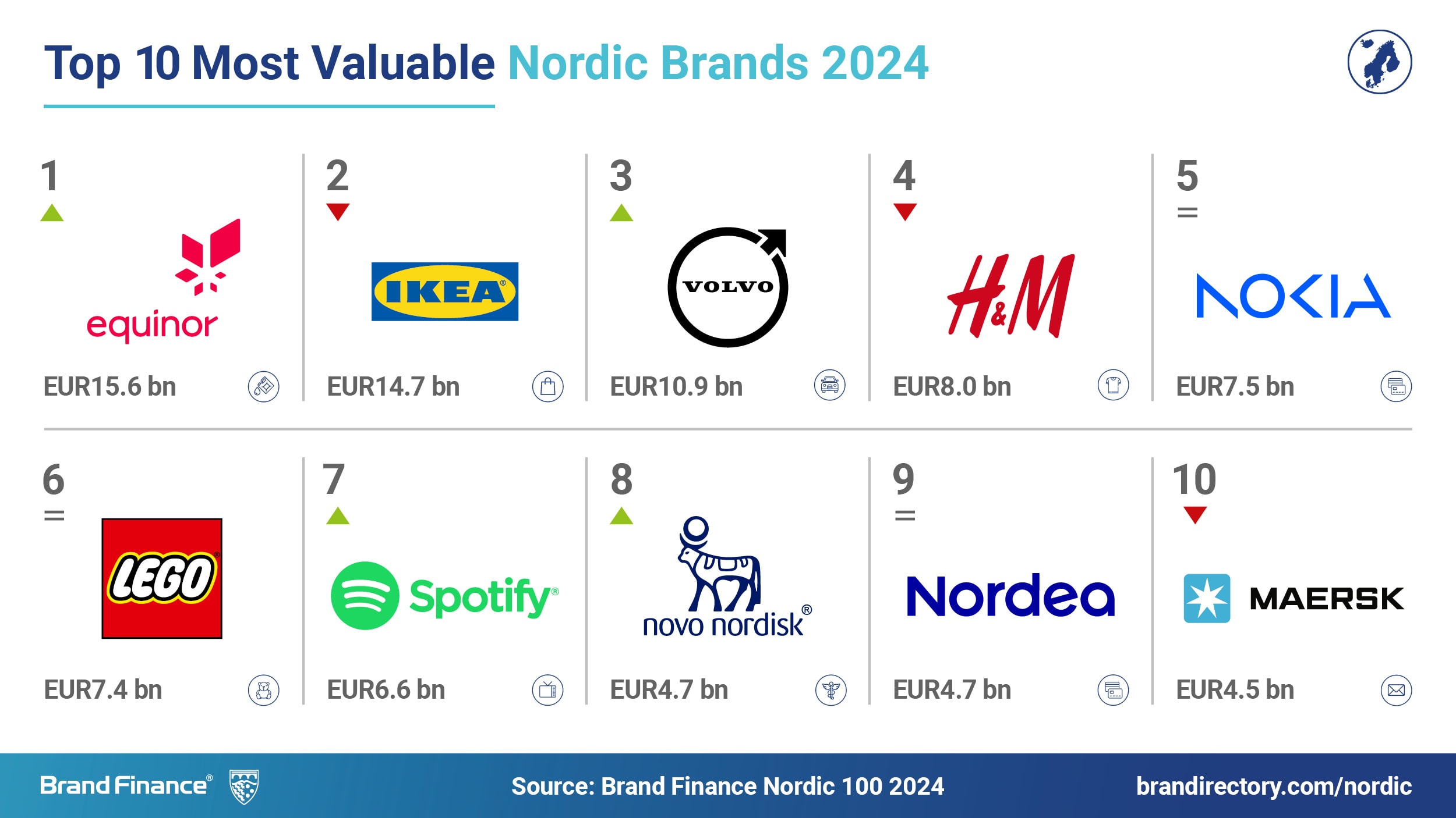 • Equinor is now the most valuable Nordic brand at EUR15.6 billion, while IKEA drops to second place