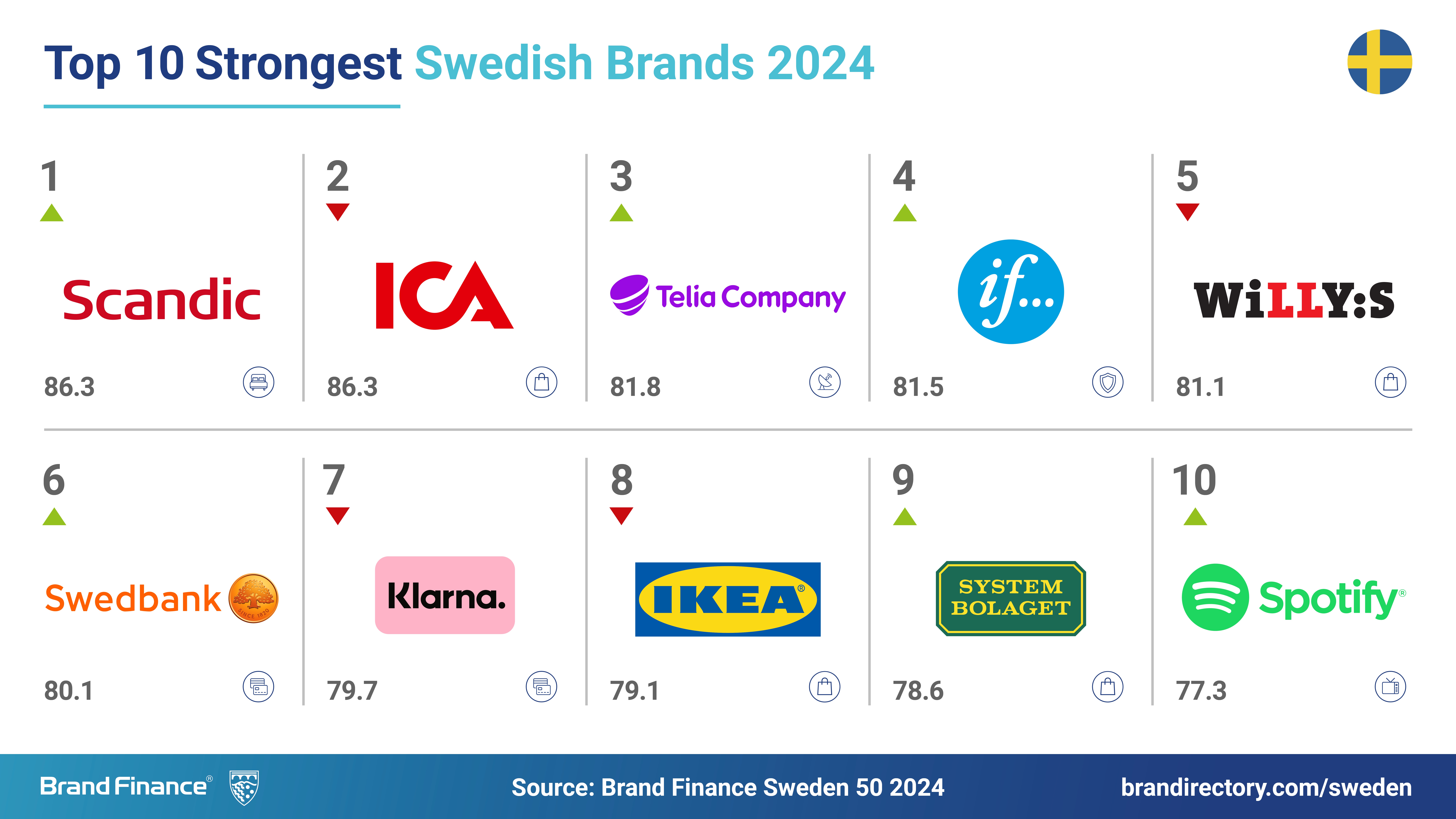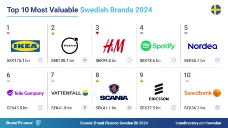 Varje år testar och mäter det ledande företaget för varumärkesvärdering, Brand Finance, 5,000 av världens största varumärken, samt publicerar över 100 rapporter som rankar varumärken inom de flesta sektorer och länder. Sveriges 50 mest värdefulla och starkaste varumärken ingår i Brand Finance Sweden 50 2024 ranking.
