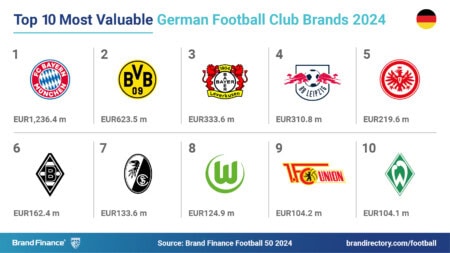 Brand Finance Studie zeigt ein Wachstum des Markenwerts und der Markenstärke von fast allen Top-Fußballvereinsmarken der Bundesliga