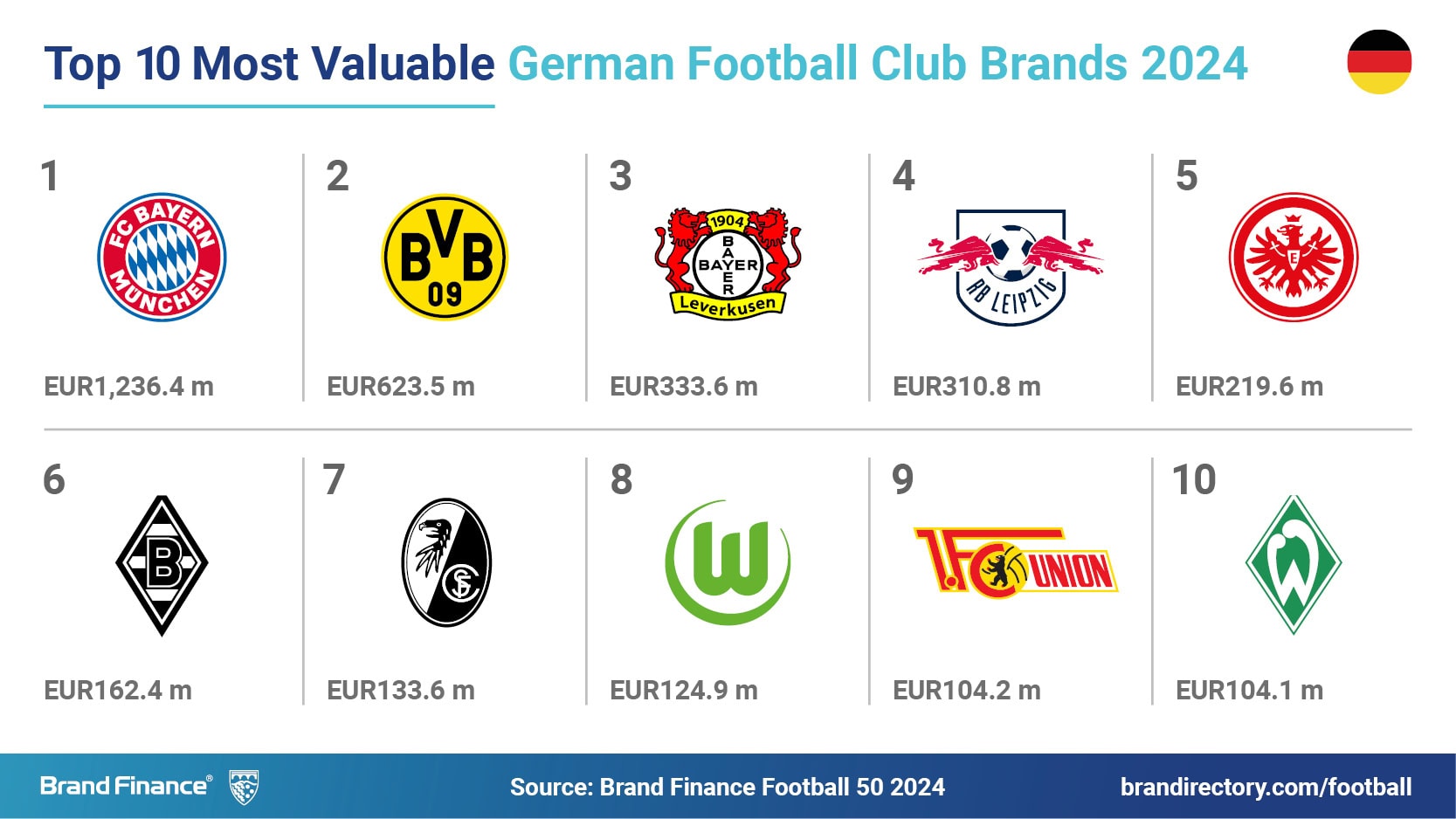 Bayer 04 Leverkusen verzeichnete den größten Markenwertzuwachs aller Fußballvereinsmarken in der Top 50 Tabelle, mit einem beeindruckenden Anstieg von 72 % auf 333,6 Mio. EUR. Zudem konnte die Vereinsmarke den BSI-Score um 9 Punkte auf 70,5/100 steigern. Mit dem Gewinn des ersten Bundesliga-Titels und des Deutschen Pokals im Jahr 2024 hat Bayer einen historischen Meilenstein erreicht. Diese Erfolge haben das Markenimage und die Wahrnehmung des Vereins enorm gestärkt, was durch die hohen Werte für leidenschaftliche Fans und einen spannenden und unterhaltsamen Fußball unterstrichen wird, so die Brand Finance Studie. Der Verein erhält auch eine hohe Punktzahl für sein gutes Management, was auf die sehr erfolgreiche und harmonische sportliche Führung durch den sehr beliebten und angesehenen ehemaligen spanischen Weltklassespieler Xabi Alonso zurückzuführen ist.