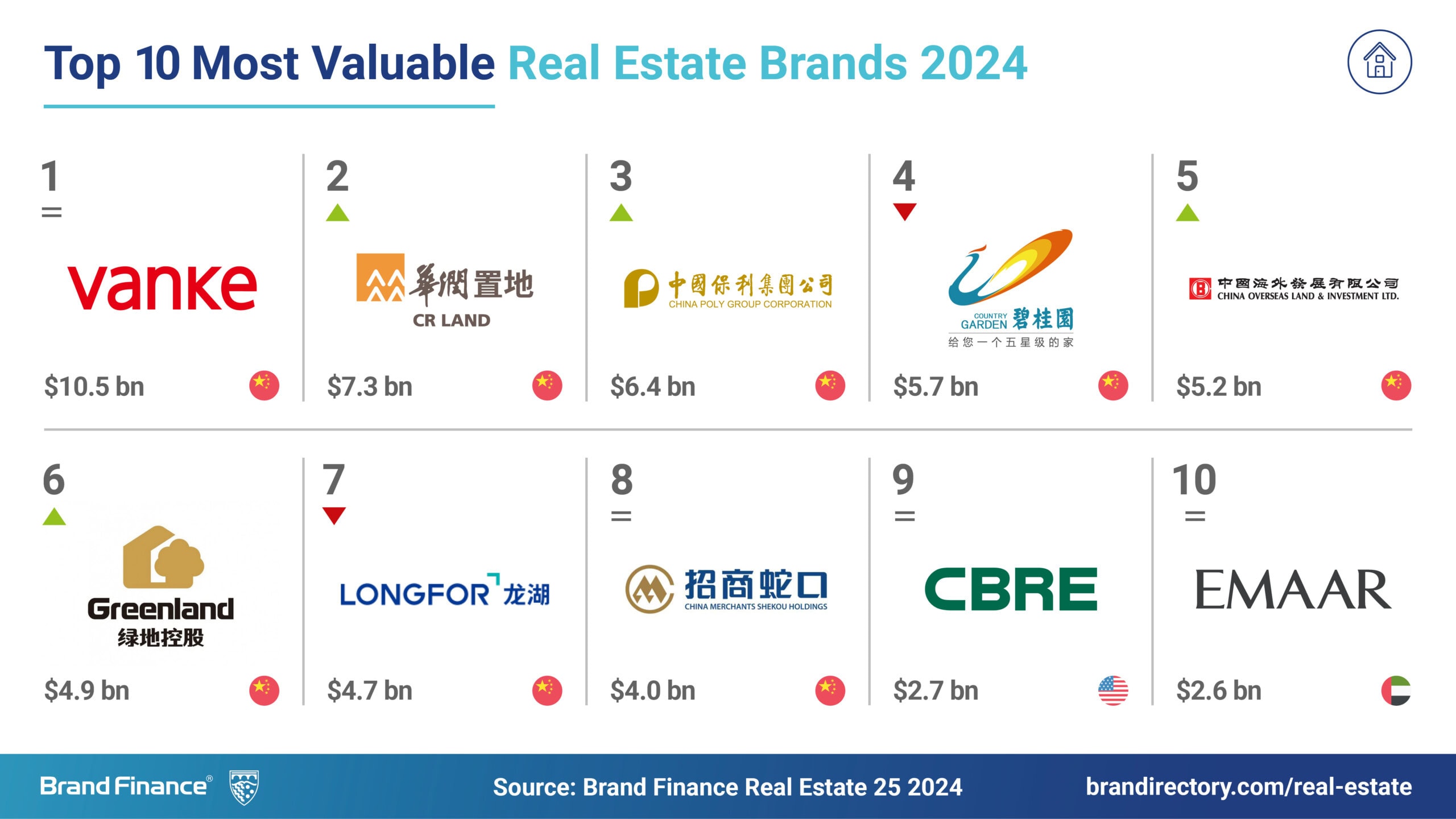 Vanke remains steadfast in its position as the most valuable real estate brand globally, despite experiencing a 21% decrease in brand value, now at USD10.5 billion. Holding onto the top spot, it previously surpassed Country Garden in 2023. Its resilience is evident amid various market challenges, including broader debt issues.
