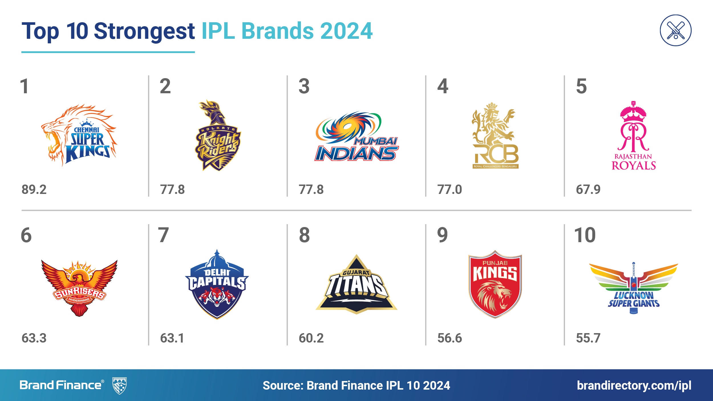 Recognised as the IPL's strongest brand in this year's rankings is CSK with a AAA brand strength rating and Brand Strength Index (BSI) score of 89.2 out of 100. KKR and MI come in as the second and third strongest brands in the IPL, both recording a Brand Strength Index (BSI) score of 77.8 out of 100.