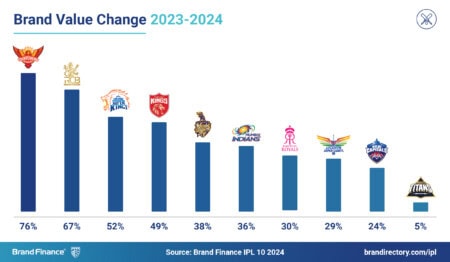 RCB (brand value up 67% to USD117 million) ranks as the IPL’s third most valuable brand and the team’s success is due to its incredibly loyal and passionate fanbase as emphasised by Brand Finance’s data.