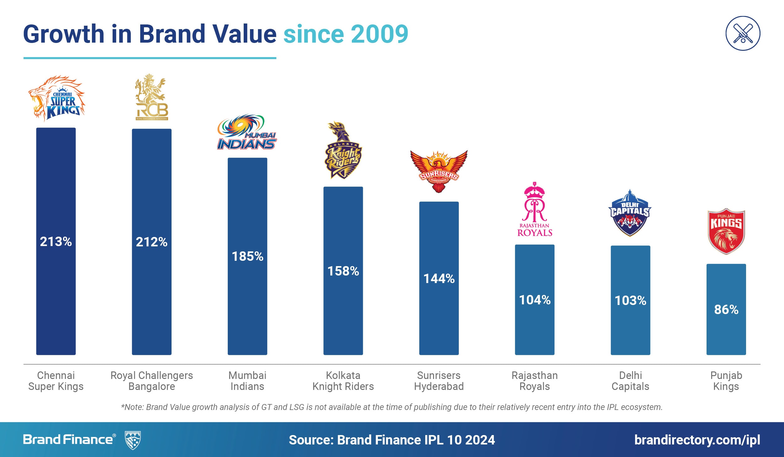 Reflecting the league's soaring popularity, four teams, namely Chennai Super Kings (CSK), Mumbai Indians (MI), Kolkata Knight Riders (KKR), and Royal Challengers Bangalore (RCB), have crossed the USD100 million brand value milestone for the first time.