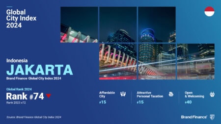 JAKARTA, 26th November 2024 – Ranking as the 74th overall city globally, Jakarta stands out for its affordability and progress in inclusivity, according to Brand Finance Global City Index, the most comprehensive global survey of city perceptions.