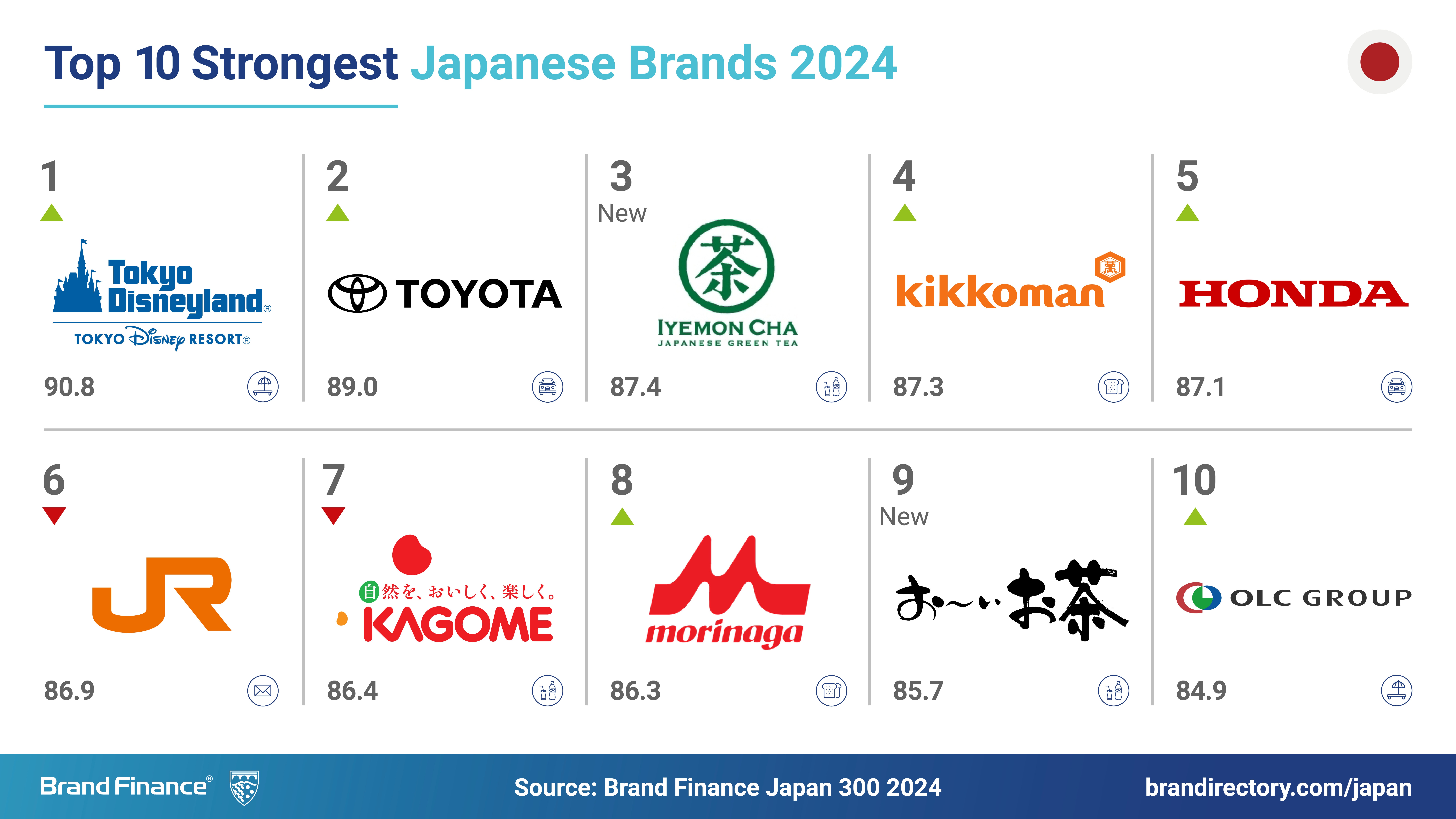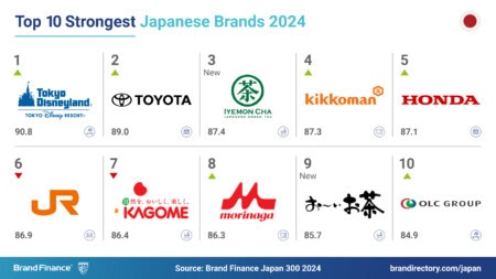 Tokyo Disney Resort (brand value up 17% to USD 2.7 billion) stands out as the only Japanese brand to achieve the prestigious AAA+ brand strength rating, complemented by a BSI score of 90.8 out of 100. Tokyo Disney Resort’s brand strength is driven by exceptional scores across several metrics, including ‘products’, ‘promotion’, and ‘familiarity’, based on Brand Finance’s research data.