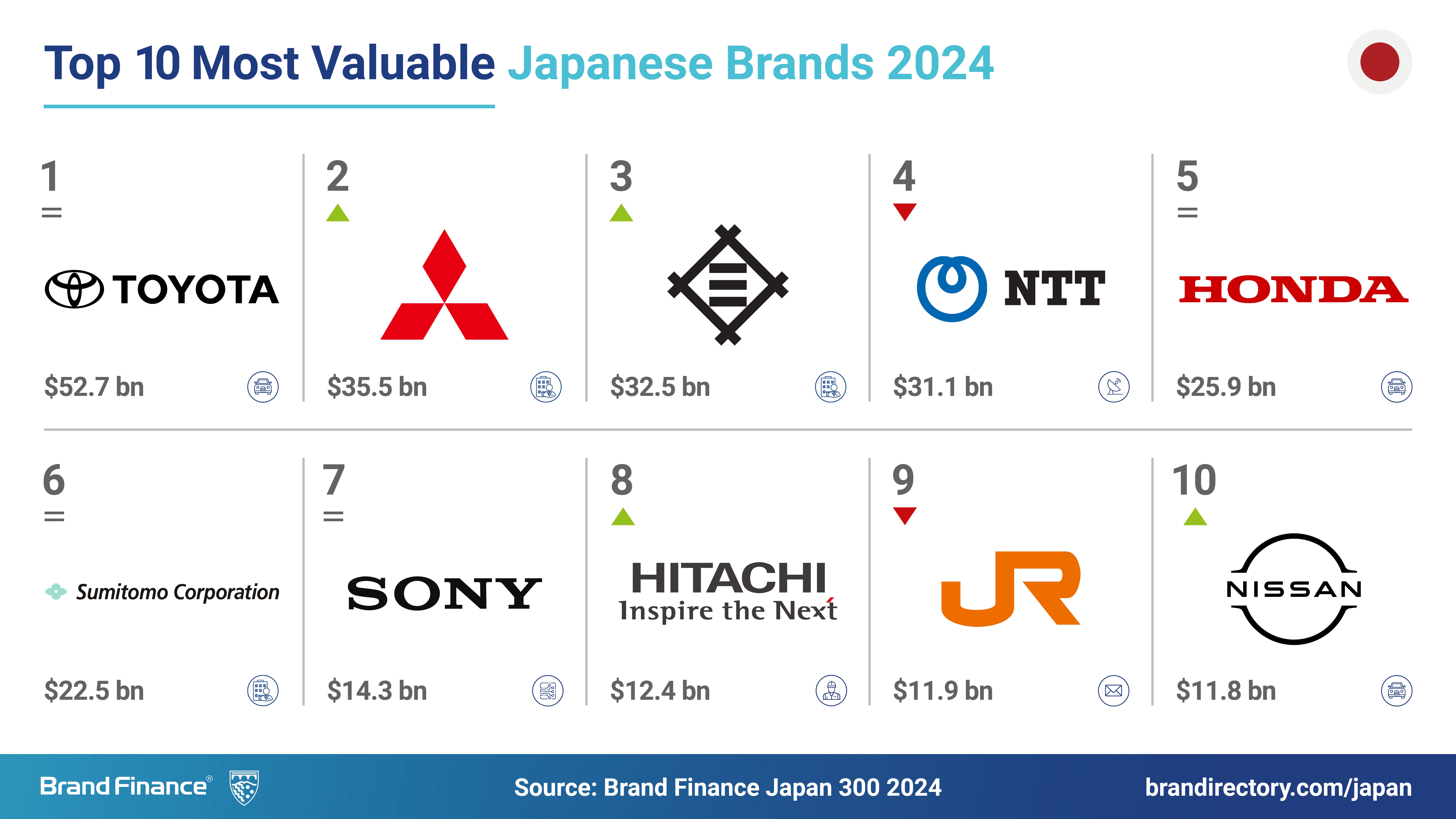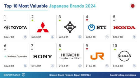 • Toyota continues its reign as the most valuable Japanese brand ranked in 2024
