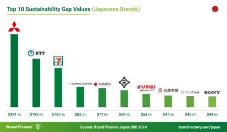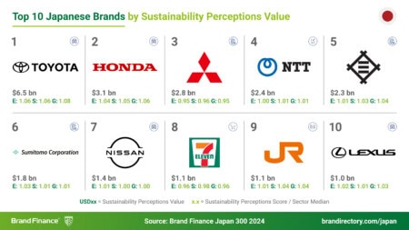 The 2024 Sustainability Perceptions Index finds that among Japanese brands, Toyota has the highest Sustainability Perceptions Value of USD6.5 billion meanwhile Mitsubishi Group has the highest positive gap value of USD291 million.