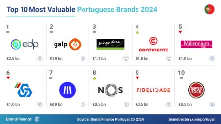 LONDON, 25 June 2024 – Energy giant EDP maintains its top position as the most valuable Portuguese brand despite facing loyalty challenges, according to the latest Brand Finance Portugal 25 2024 report from Brand Finance, the world’s leading brand valuation consultancy. The report measures the value and strength of Portuguese brands in a volatile economic environment.