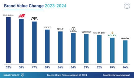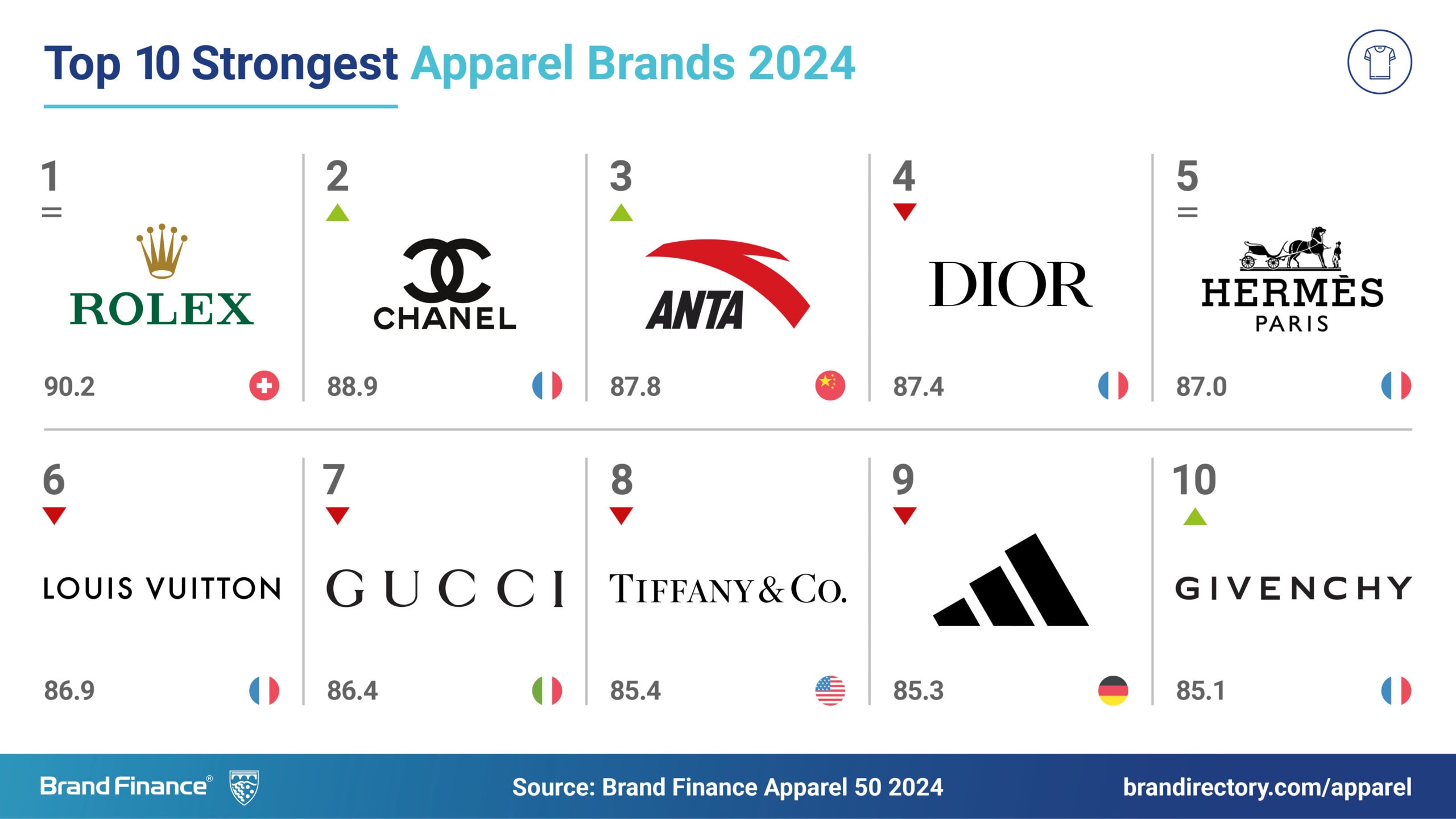 London, 9th Sept 2024 – European fashion brands have surged ahead in the latest Brand Finance Apparel 50 2024 report, showcasing remarkable growth in brand value. Leading the charge are iconic brands like Louis Vuitton, Rolex, and Dolce & Gabbana, which have not only maintained their market positions but have also achieved significant gains in a year marked by challenges and opportunities.
