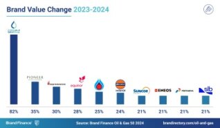 Behind QatarEnergy, Pioneer Natural Resources is the second-fastest growing brand, up 35% to USD4.5 billion, followed by EOG Resources, up 35% to USD3.5 billion. Brand Finance research shows EOG Resources’ growth is fuelled by decentralised exploration efforts, highlighted by discoveries in Ohio Utica Combo, South Texas Dorado, and Southern Powder River Basin. EOG's focus on multiple prospects underscores its ability to expand its portfolio and boost revenue.