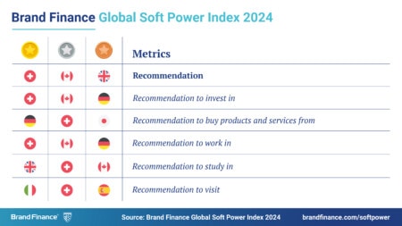 Brand Finance veröffentlicht den Global Soft Power Index auf der Grundlage einer Umfrage unter mehr als 170.000 Befragten aus über 100 Ländern, um Daten über die globale Wahrnehmung aller 193 Mitgliedsstaaten der Vereinten Nationen zu sammeln. Dank des Umfangs der Umfrage ist der Index die weltweit umfassendste Studie über die Wahrnehmung von Nationenmarken und bietet eine eingehende Analyse des sich entwickelnden Status von Soft Power, da die Nationen bedeutende globale Veränderungen und Herausforderungen bewältigen.
