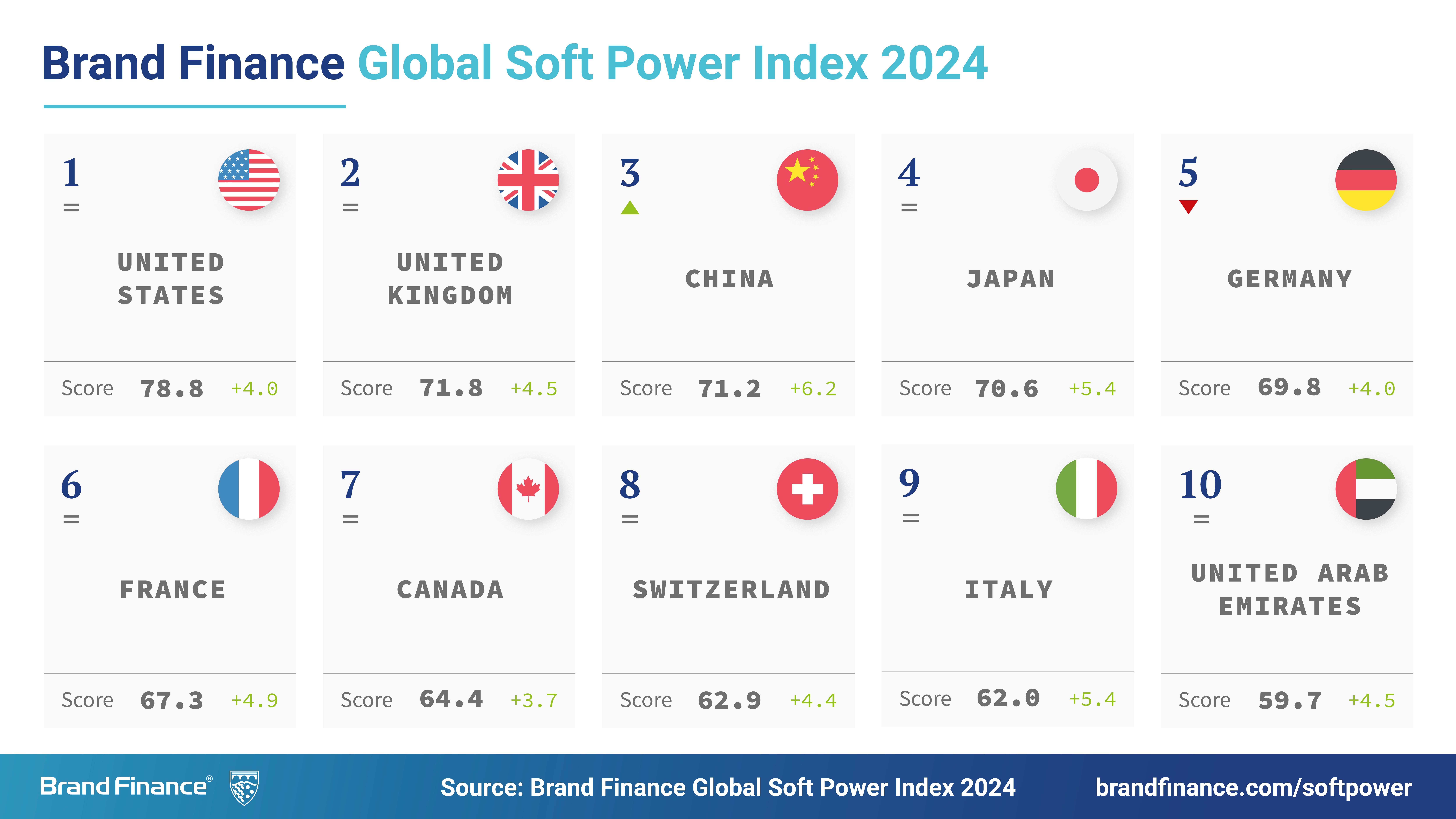 Aus der aktuellsten Global Soft Power Index Studie geht weiter hervor: